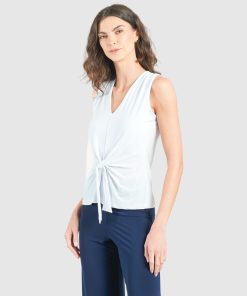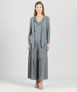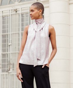 Clara Sunwoo Women’s Glimmer Lamé – Sleeveless Pleated Detail Tank – Silver – Final Sale! | Silver