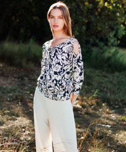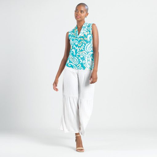Clara Sunwoo Women’s Butter Knit – Sleeveless Draped Cowl Neck Top – Paisley Lotus – Final Sale! | Turquoiseivory