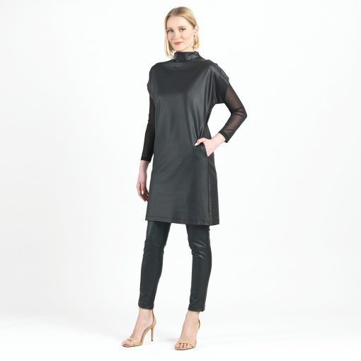 Clara Sunwoo Women’s Liquid Leather™ – High Neck Tunic Pocket Dress – Black – Final Sale! | Black