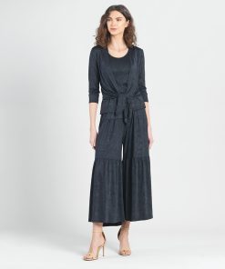 Clara Sunwoo Women’s Soft Textured Rayon – Wrap Overlay Center Tie Midi Dress – Black – Final Sale! | Black