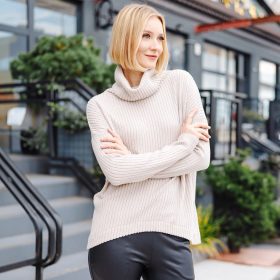 Clara Sunwoo Women’s Cashmere-like Knit – Cowl Neck Side Ruched Sweater Top – Oatmeal – Final Sale! | Oatmeal