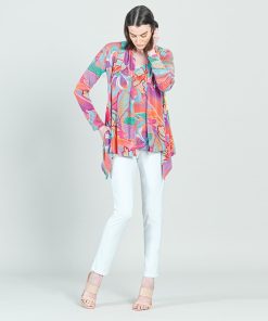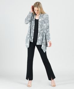 Clara Sunwoo Women’s Pleated Knit – Drape Tunic Cardigan – Artistic Leaf – Final Sale! | Whiteblack