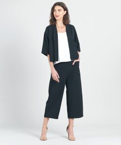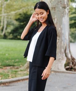 Clara Sunwoo Women’s Linen Knit – Hi-low Pocket Cardigan Jacket – Black – Final Sale! | Black