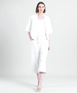 Clara Sunwoo Women’s Linen Knit – Hi-low Pocket Cardigan Jacket – Ivory – Final Sale! | Ivory