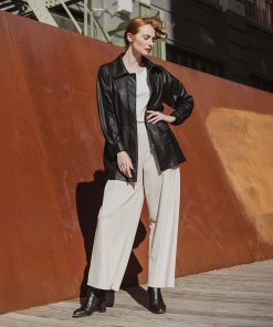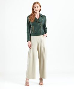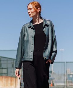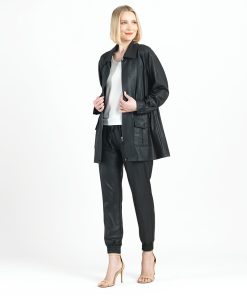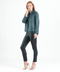 Clara Sunwoo Women’s Liquid Leather™ Button Closure Pocket Jacket – Hunter Green | Huntergreen