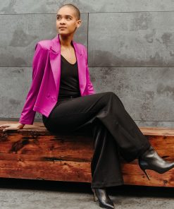Clara Sunwoo Women’s Liquid Leather™ Cropped Tuxedo Blazer – Magenta – Final Sale! | Magenta