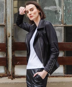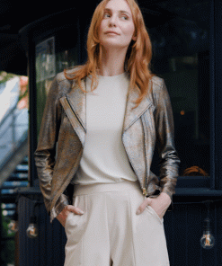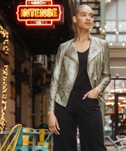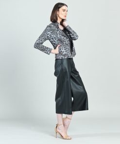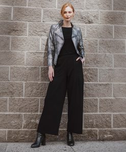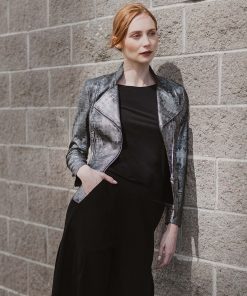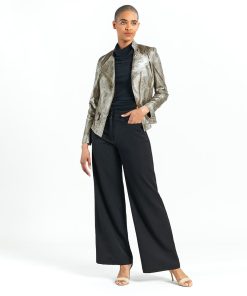 Clara Sunwoo Women’s Metallic Liquid Leather™ Textured Biker Jacket – Gunmetal Silver | Silver