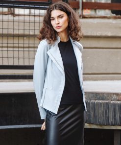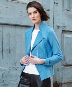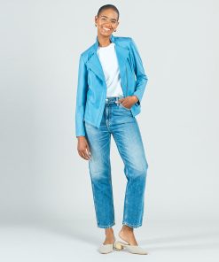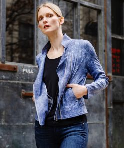 Clara Sunwoo Women’s Liquid Leather™ Textured Double Zip Pocket Jacket – Denim – Final Sale! | Denim