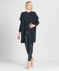 Clara Sunwoo Women’s Pleated Knit – Drape Tunic Cardigan – Artistic Leaf – Final Sale! | Whiteblack