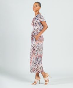 Clara Sunwoo Women’s Side Slit 3/4 Sleeve Midi Dress – Mosaic Leaves – Final Sale! | Multi