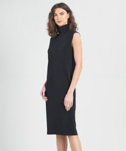 Clara Sunwoo Women’s Ponte Knit – Funnel Neck Tunic Sweater Dress – Black – Final Sale! | Black
