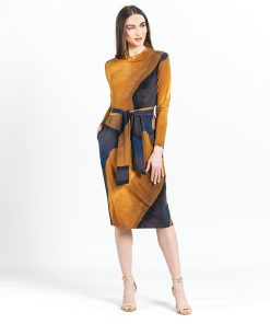 Clara Sunwoo Women’s Tie Waist Pocket Midi Dress – Tan Watercolor – Final Sale! | Tanmulti