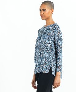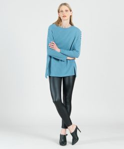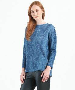 Clara Sunwoo Women’s Cozy Texture – Vented Sweater Tunic – Denim Print – Final Sale! | Denim