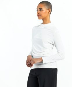 Clara Sunwoo Women’s Ultra Cozy – Draped Neck Side Ruched Sweater Top – Ivory – Final Sale! | Ivory