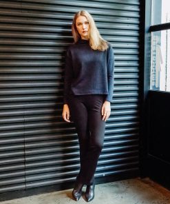 Clara Sunwoo Women’s Ultra Cozy – Draped Neck Side Ruched Sweater Top – Black – Final Sale! | Black