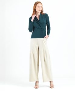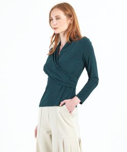 Clara Sunwoo Women’s V-neck Draped Pleat Top – Hunter Green – Final Sale! | Huntergreen
