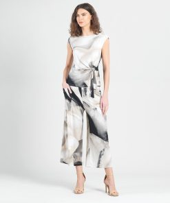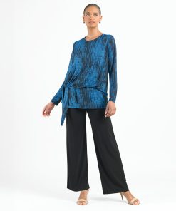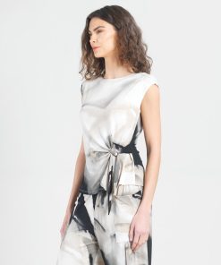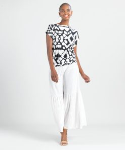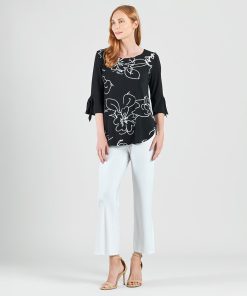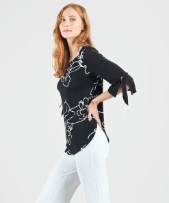 Clara Sunwoo Women’s Crepe Knit – Tie Cuff Curved Hem Tunic – Blossom Sketch | Blackwhite