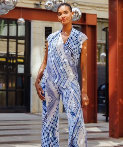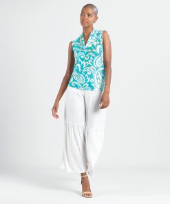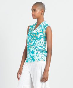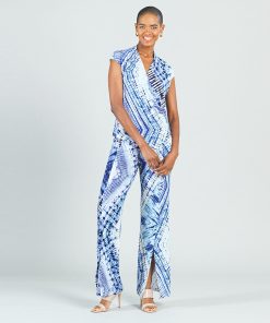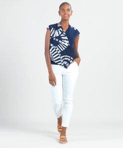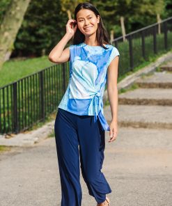 Clara Sunwoo Women’s Crepe Knit – Grecian Halter Top – Swirl Wave – Final Sale! | Navywhite
