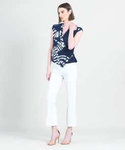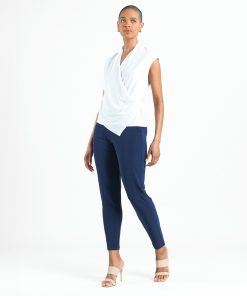 Clara Sunwoo Women’s Crossover Faux Wrap Top – Track Line-navy – Final Sale! | Navywhite