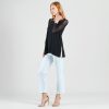 Clara Sunwoo Women’s Crepe Knit – Tie Cuff Curved Hem Tunic – Blossom Sketch | Blackwhite