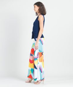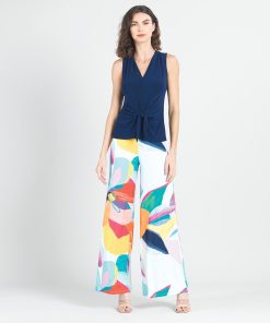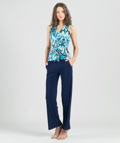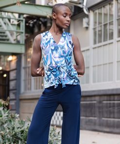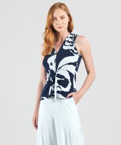 Clara Sunwoo Women’s Sleeveless V-neck Center Front Tie Top – Abstract Branch | Navywhite