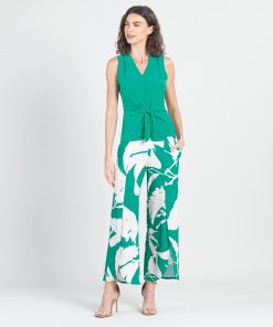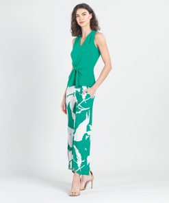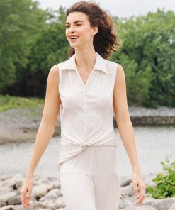 Clara Sunwoo Women’s Sleeveless V-neck Center Front Tie Top – Damask Motif | Coralwhite