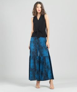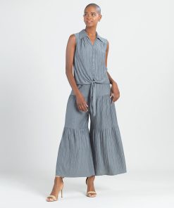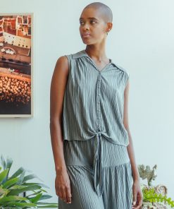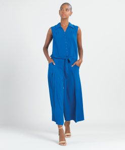 Clara Sunwoo Women’s Soft Textured Rayon – Sleeveless Button Down Tie Hem Top – Cobalt | Cobalt