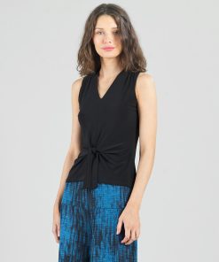 Clara Sunwoo Women’s Sleeveless V-neck Center Front Tie Top – Geo Sketch – Final Sale! | Blackwhite