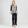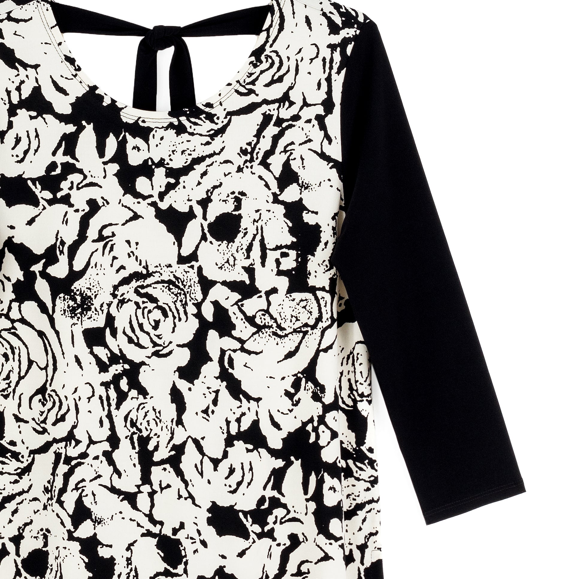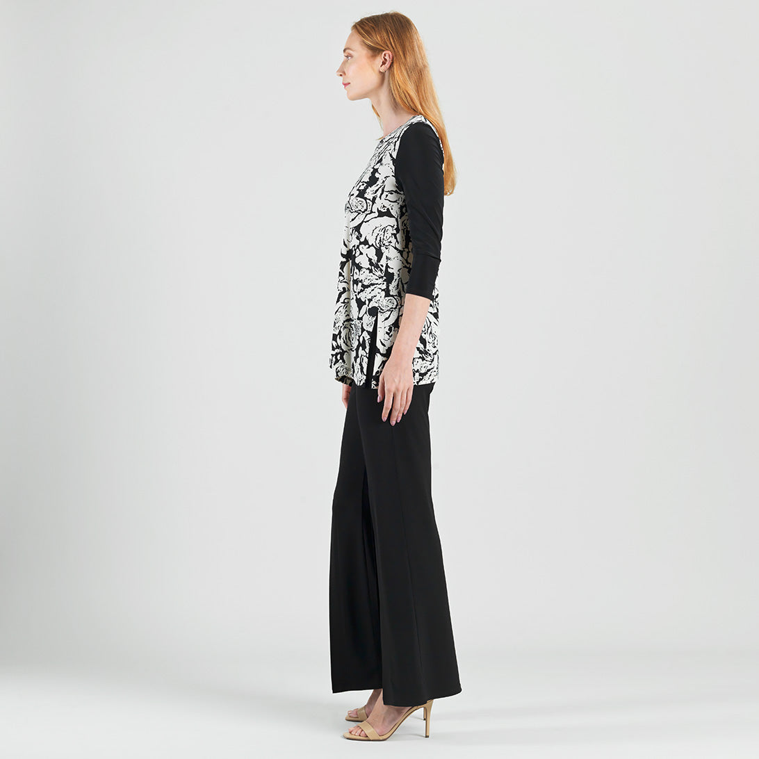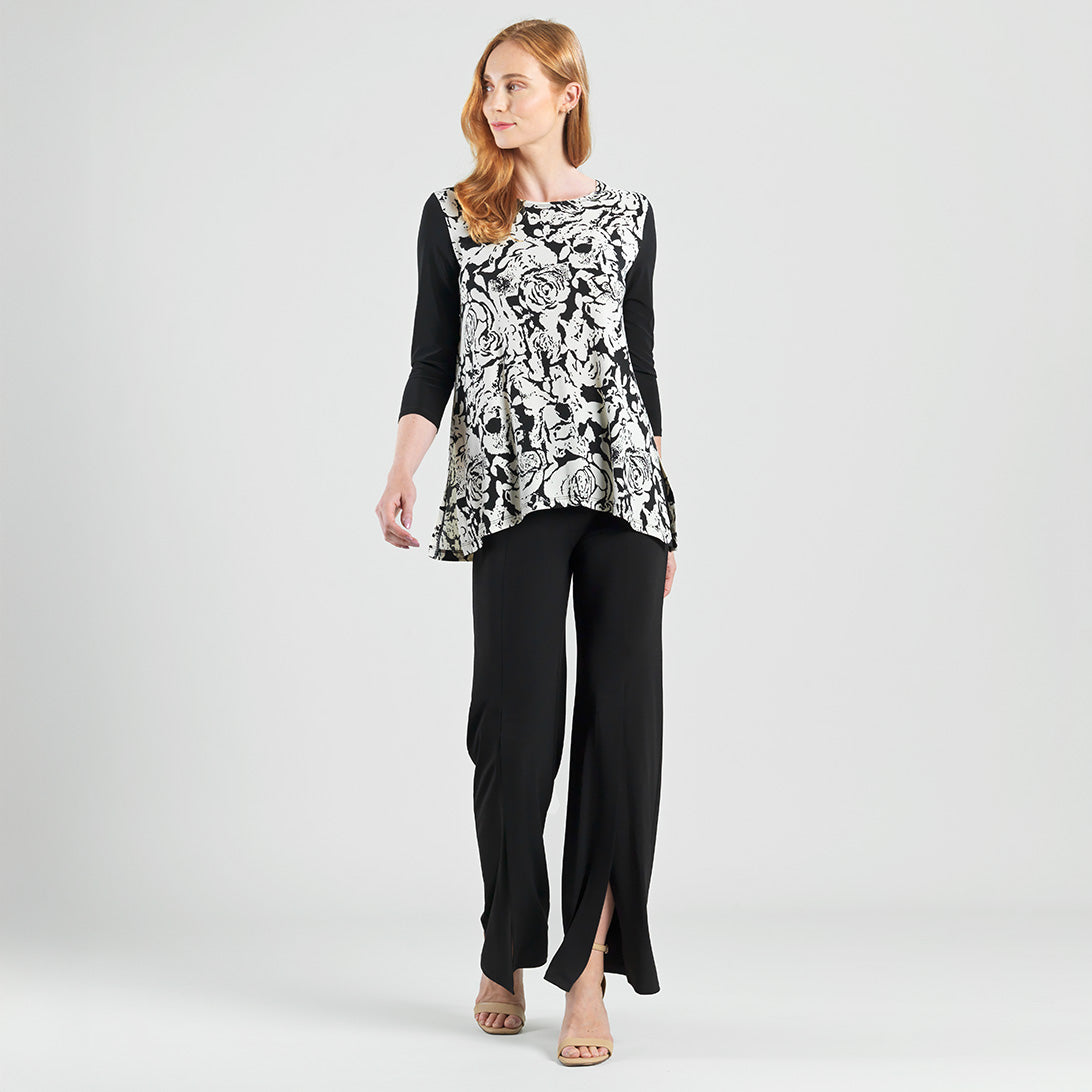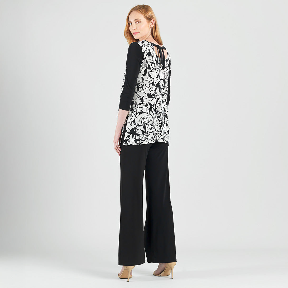A style so beautiful you’ll look as fresh as our Back Tie Side Vent Tunic! This tunic features a printed front and back body with a charming back tie detail, a scoop neckline, 3/4 length sleeves, and a shark bite hemline with dual side vents that create a flattering silhouette. A minimalist print comprised of shades of creamy bone and black that create soft and subtle abstract rosettes. ♥ Each piece is a unique, one-of-a-kind print and print placement will vary. Carefree Travel Fabric – Soft Silky Knit Our signature poly blend fibers offer luxurious softness with lightweight, wrinkle-free comfort. This easy-care fabric is quick drying and cooler than linen or cotton, making it perfect for on-the-go wear.Wrinkle Free Travel Friendly Ultra Lightweight Soft Knit Fabric Breathable Jersey-Like Feel