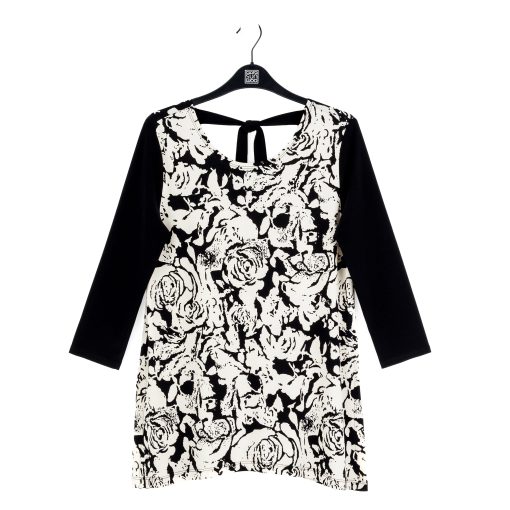 A style so beautiful you’ll look as fresh as our Back Tie Side Vent Tunic! This tunic features a printed front and back body with a charming back tie detail, a scoop neckline, 3/4 length sleeves, and a shark bite hemline with dual side vents that create a flattering silhouette. A minimalist print comprised of shades of creamy bone and black that create soft and subtle abstract rosettes. ♥ Each piece is a unique, one-of-a-kind print and print placement will vary. Carefree Travel Fabric – Soft Silky Knit Our signature poly blend fibers offer luxurious softness with lightweight, wrinkle-free comfort. This easy-care fabric is quick drying and cooler than linen or cotton, making it perfect for on-the-go wear.Wrinkle Free Travel Friendly Ultra Lightweight Soft Knit Fabric Breathable Jersey-Like Feel