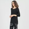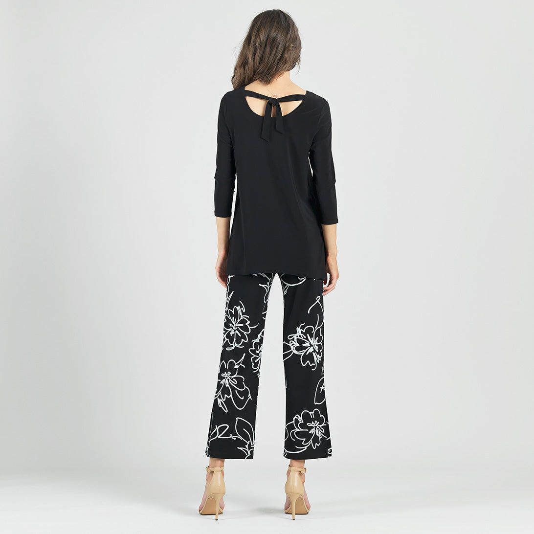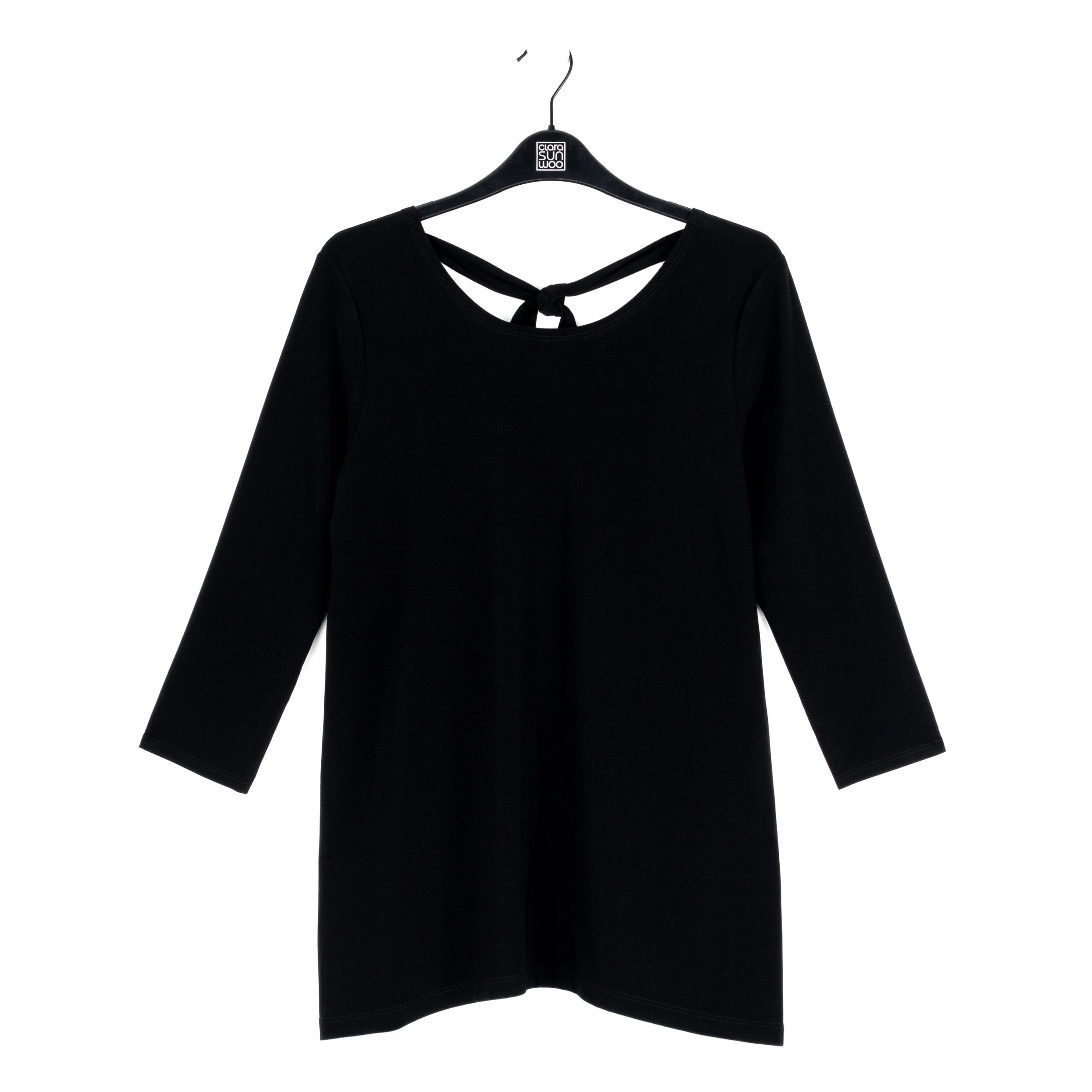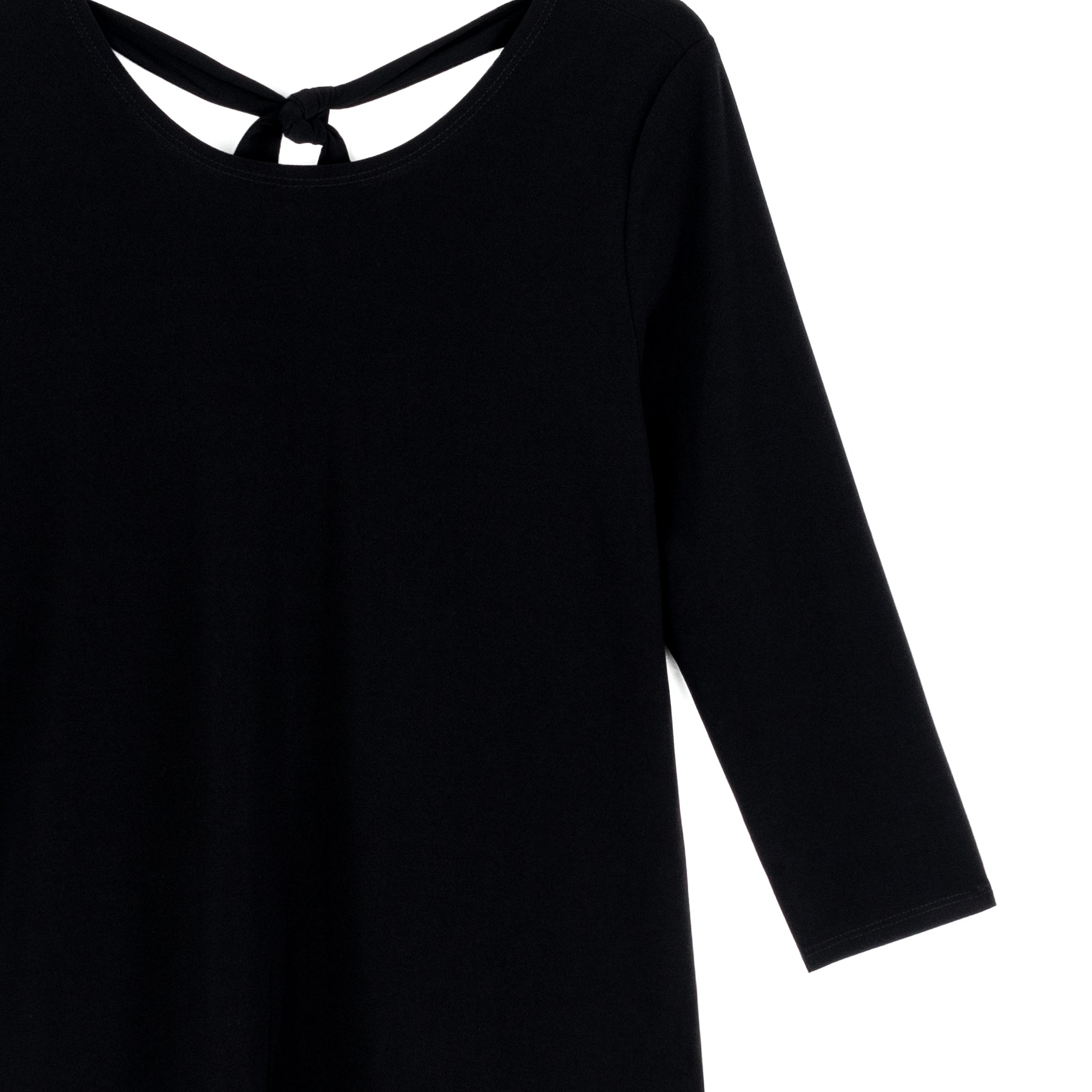 Tie you look up in a bow with our Back Tie Side Vent Tunic! This tunic features a scoop neckline, 3/4 length sleeves, a charming back tie detail with a shark bite hemline, and dual side vents that create a flattering silhouette. Carefree Travel Fabric – Soft Silky Knit Our signature poly blend fibers offer luxurious softness with lightweight, wrinkle-free comfort. This easy-care fabric is quick drying and cooler than linen or cotton, making it perfect for on-the-go wear.Wrinkle Free Travel Friendly Ultra Lightweight Soft Knit Fabric Breathable Jersey-Like Feel