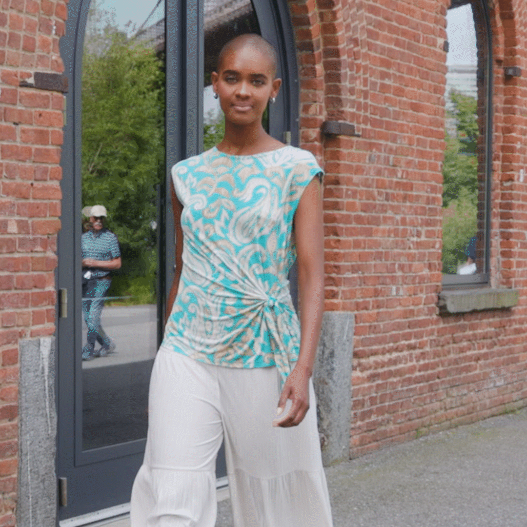 Are you looking for that perfect style that will instantly refresh your wardrobe? Well, our Paisley Lotus Butter Knit Cap Sleeve Side Tie Top is sure to breathe new life into it! This style features a scoop neckline, cap sleeves, a side tie detail that allows you to create a silhouette to your liking, and a straight hemline. An elegantly feminine print displaying a large-scale paisley design in lotus flower shapes, comprised of warm turquoise, ivory, and shades of taupe. ♥ Each piece is a unique, one-of-a-kind print and print placement will vary. An elegant, translucent fabric, inspired by luxe satin fibers. Designed to beautifully drape against the body, with the softest, velvety-silken-like finish, while being cool and smooth to the touch. Carefree Travel Fabric – Soft Silky Buttery Knit Our signature poly blend fibers create an ultra-soft, buttery feel that’s wrinkle-free and perfect for traveling. Enjoy the luxurious sensation and an indulgent touch of our fabric – you’ll never want to take it off!Wrinkle Free Travel Friendly Ultra Lightweight Soft Buttery Knit Fabric Breathable Jersey-Like Feel