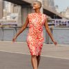 Are you looking for that perfect style that will instantly refresh your wardrobe? Well, our Paisley Lotus Butter Knit Side Slit Midi Dress is sure to breathe new life into it! This stunning dress features a high draped neckline, cap sleeves, a ruched side bodice that creates a flattering draped silhouette, and a 10″ left side slit with a midi hemline.An elegantly feminine print displaying a large-scale paisley design in lotus flower shapes, comprised of a warm, orange-toned coral, ivory, and shades of tan. ♥ Each piece is a unique, one-of-a-kind print and print placement will vary. An elegant, translucent fabric, inspired by luxe satin fibers. Designed to beautifully drape against the body, with the softest, velvety-silken-like finish, while being cool and smooth to the touch. Carefree Travel Fabric – Soft Silky Buttery Knit Our signature poly blend fibers create an ultra-soft, buttery feel that’s wrinkle-free and perfect for traveling. Enjoy the luxurious sensation and an indulgent touch of our fabric – you’ll never want to take it off!Wrinkle Free Travel Friendly Ultra Lightweight Soft Buttery Knit Fabric Breathable Jersey-Like Feel 10″ Side Left Slit
