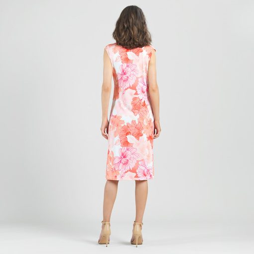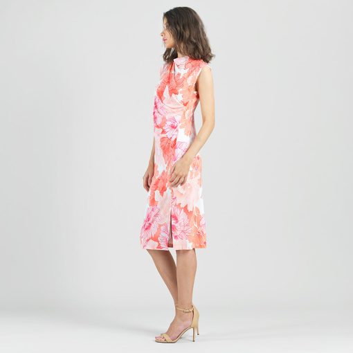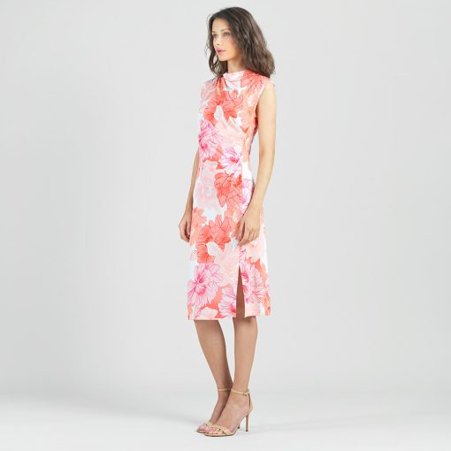 Experience the beauty of a golden hour in our Sunset Petals Butter Knit Side Slit Midi Dress! This stunning dress features a high draped neckline, cap sleeves, a ruched side bodice that creates a flattering draped silhouette, and a 10″ left side slit with a midi hemline. A delicate arrangement of large-scale flowers in shades of coral, peach, pink, and subtle hints of white that create gentle gradients that mimic the fluidity of watercolors. ♥ Each piece is a unique, one-of-a-kind print and print placement will vary. An elegant, translucent fabric, inspired by luxe satin fibers. Designed to beautifully drape against the body, with the softest, velvety-silken-like finish, while being cool and smooth to the touch. Carefree Travel Fabric – Soft Silky Buttery Knit Our signature poly blend fibers create an ultra-soft, buttery feel that’s wrinkle-free and perfect for traveling. Enjoy the luxurious sensation and an indulgent touch of our fabric – you’ll never want to take it off!10″ Left Side Slit Wrinkle Free Travel Friendly Ultra Lightweight Soft Buttery Knit Fabric Breathable Jersey-Like Feel