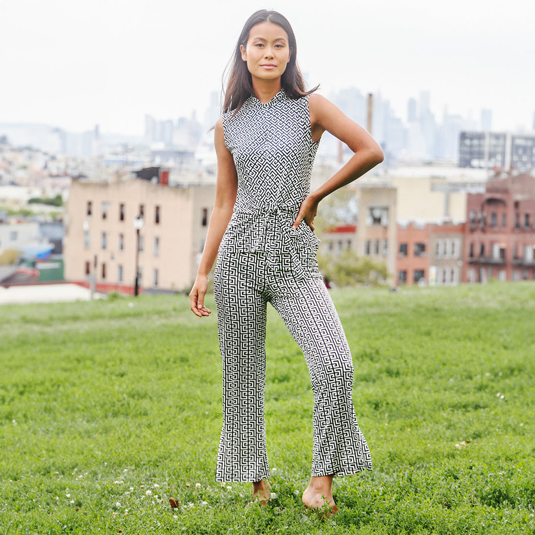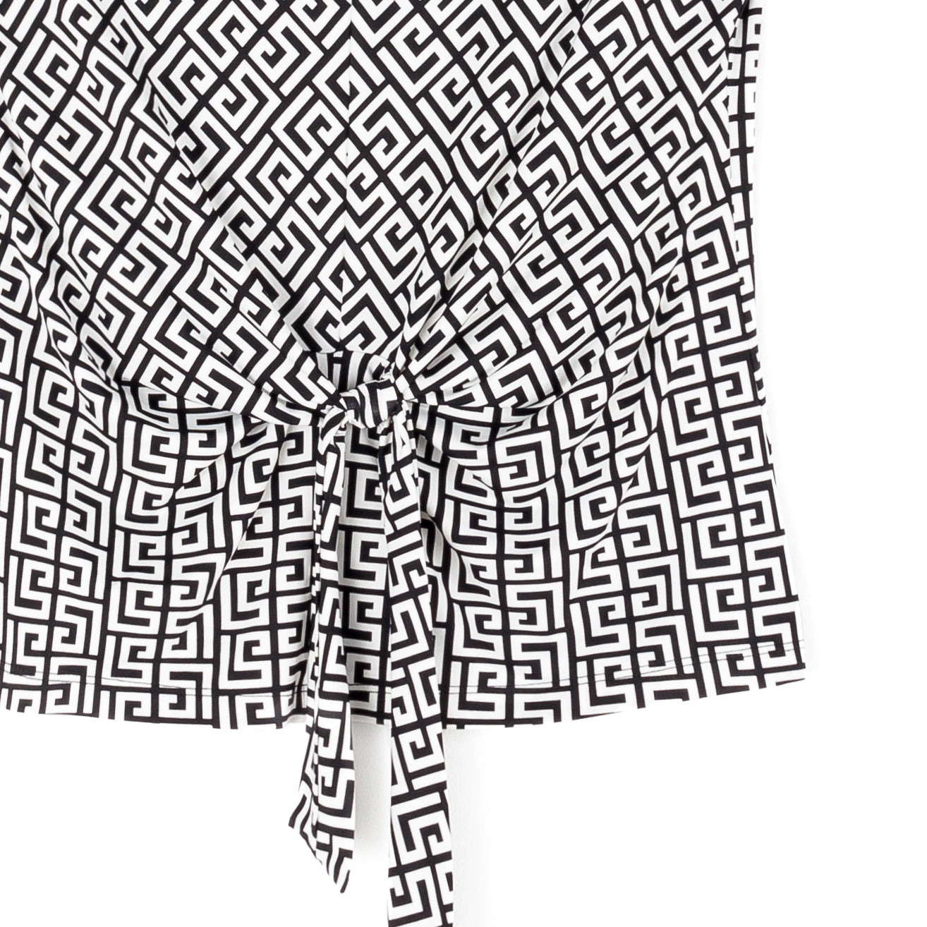 Our Greek Key Butter Knit Sleeveless Center Front Tie Top gives new meaning to the phrase “eternal fashion”! This flattering sleeveless top features a v-bottle neckline, a vertical neck-to-hem center seam, and a front-center waist tie that creates a beautiful draped effect that accentuates your natural figure. A graphic print that displays a geometric design of Greek keys formatted in a linear placement that helps to accentuate and flatter the figure. ♥ Each piece is a unique, one-of-a-kind print and print placement will vary. An elegant, translucent fabric, inspired by luxe satin fibers. Designed to beautifully drape against the body, with the softest, velvety-silken-like finish, while being cool and smooth to the touch. Carefree Travel Fabric – Soft Silky Buttery Knit Our signature poly blend fibers create an ultra-soft, buttery feel that’s wrinkle-free and perfect for traveling. Enjoy the luxurious sensation and an indulgent touch of our fabric – you’ll never want to take it off!Wrinkle Free Travel Friendly Ultra Lightweight Soft Buttery Knit Fabric Breathable Jersey-Like Feel