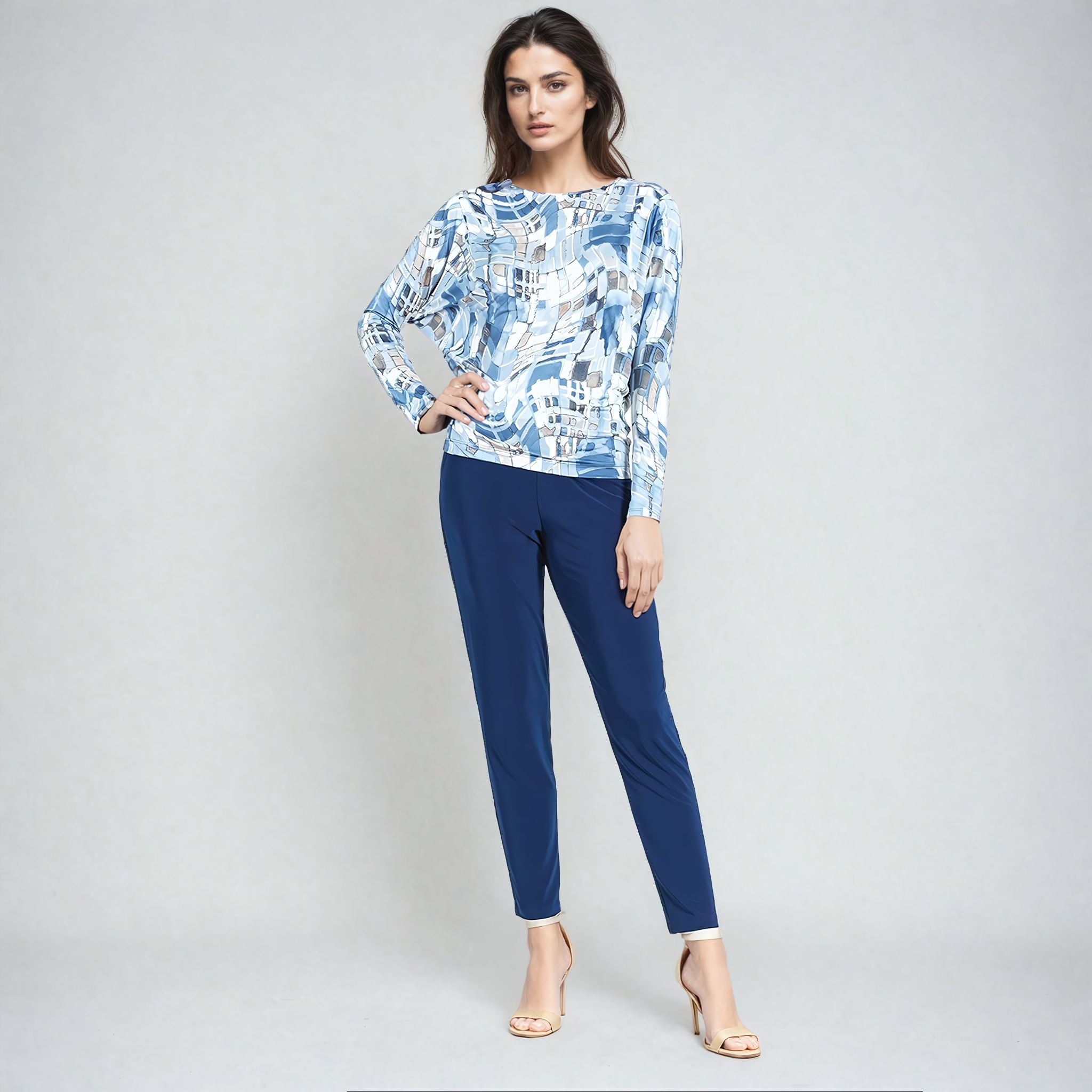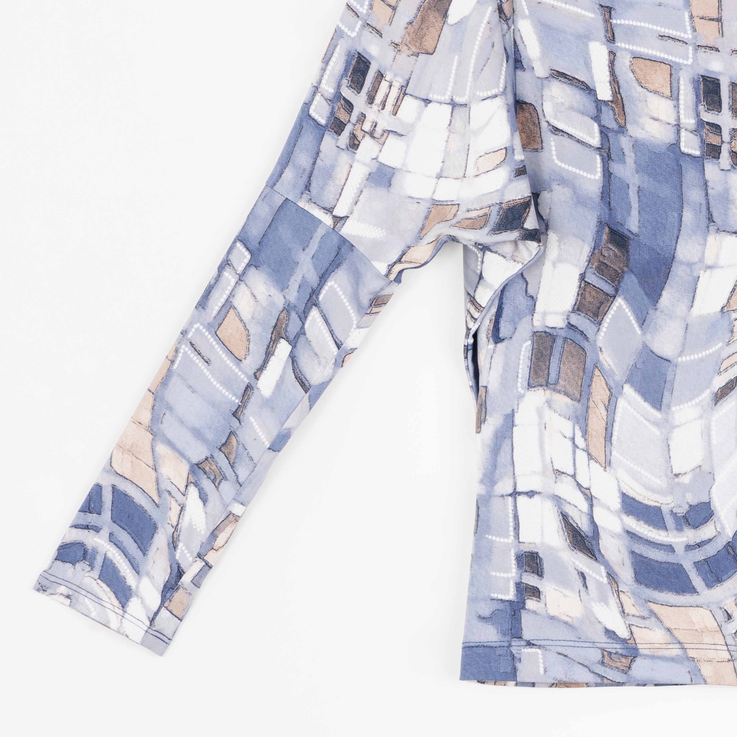 While a picture may be worth a thousand words, our Mosaic Tile Textured Dolman Sleeve Top is that much more beautiful in person! Featuring a round neckline, a straight waist hem, and long dolman sleeves that are cut wide at the shoulder and gradually taper to display a slender sleeve silhouette with a wing-like appearance. A visually appealing print, featuring an arrangement of tile squares in mosaic shapes displayed in shades of powder and denim blue, and light grey, encompassed by dark and light shades of taupe, with a white embossed texture that creates a 3-dimensional contrast. ♥ Each piece is a unique, one-of-a-kind print and print placement will vary. An elegant, translucent fabric, inspired by luxe satin fibers. Designed to beautifully drape against the body, with the softest, velvety-silken-like finish, while being cool and smooth to the touch. Carefree Travel Fabric – Soft Silky Buttery Knit w/ Embossed Textured Our signature poly blend fibers create an ultra-soft, buttery feel, that’s wrinkle-free and perfect for traveling, featuring an embossed texture. Enjoy the luxurious sensation and an indulgent touch of our fabric – you’ll never want to take it off!Wrinkle Free Travel Friendly Ultra Lightweight Soft Buttery Knit Fabric Breathable Jersey-Like Feel Embossed Threading Detail