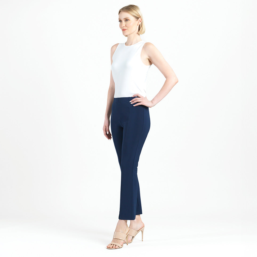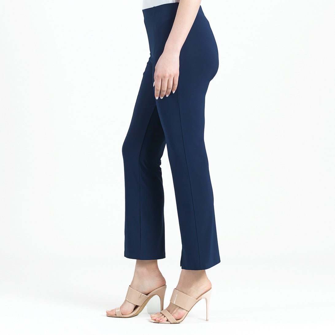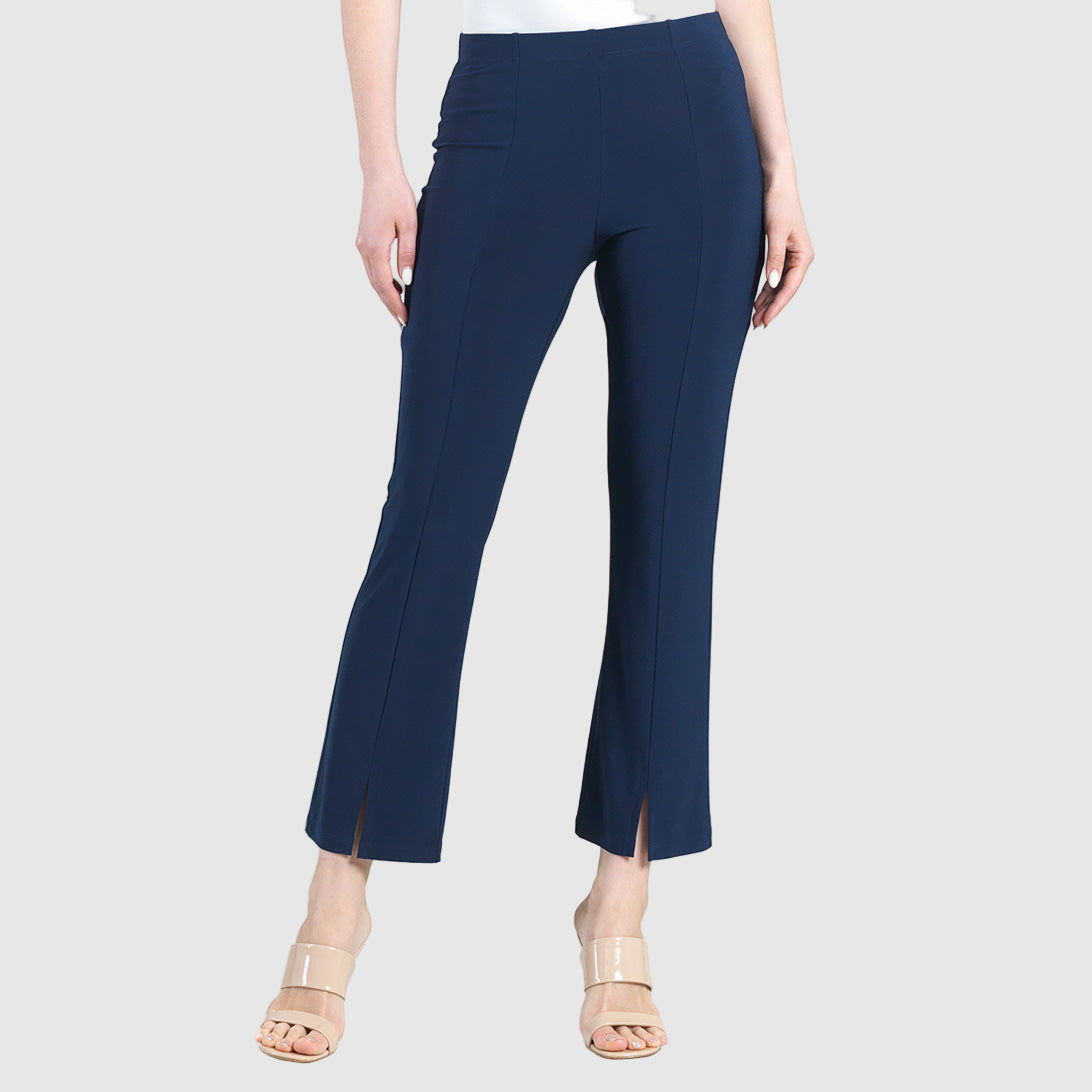 Freshen up your wardrobe by adding our chic Center Seam Front Slit Ankle Pant to it! This stylish pant features a 1” pull-on elastic waistband, vertical center leg seam with a flared ankle-length hem, and sleek front leg slit. Made to provide a slimming silhouette in the hip and thigh area while gradually flaring towards the hem.Carefree Travel Fabric – Soft Silky Knit Our signature poly blend fibers offer luxurious softness with lightweight, wrinkle-free comfort. This easy-care fabric is quick drying and cooler than linen or cotton, making it perfect for on-the-go wear.1″ Elastic Waistband 4.5″ to 5″ Front Slit Flared Opening Center Seam Detail Wrinkle Free Travel Friendly Ultra Lightweight Soft Knit Fabric Breathable Jersey-Like Feel