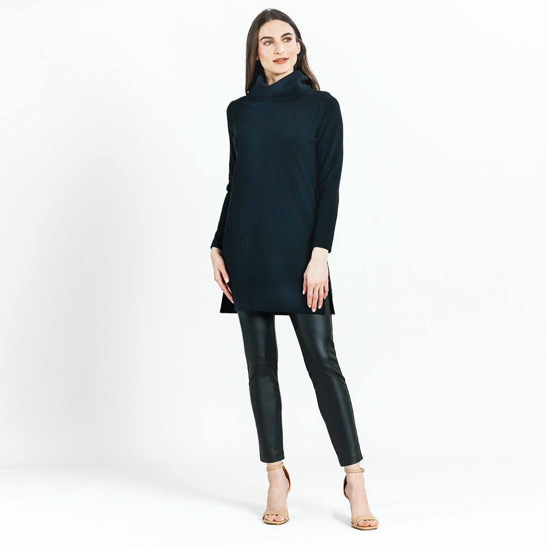 Every woman wants to feel cozy and chic during those cooler months, and our Chunky Ribbed Cowl Turtleneck Sweater Tunic is the perfect piece to help achieve that! This sweater tunic features a cowl turtleneck, long sleeves, and a straight hemline with 8″ side vents. Chunky Cotton-Ribbed Sweater Knit Our Poly-Cotton Blend sweater knit is constructed from a thicker, mid-heavy weight fabric. Its sturdy ribbed texture is meant to provide substantial warmth and a heavy drape, with a chunky structure that retains its shape for long-lasting use. Known to get softer with each wear while maintaining exceptional durability that is easy to care for and travel-friendly!Travel Friendly Chunky Ribbed Texture Thicker, Mid-Heavy Weight Fabric