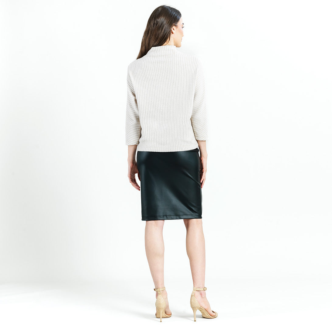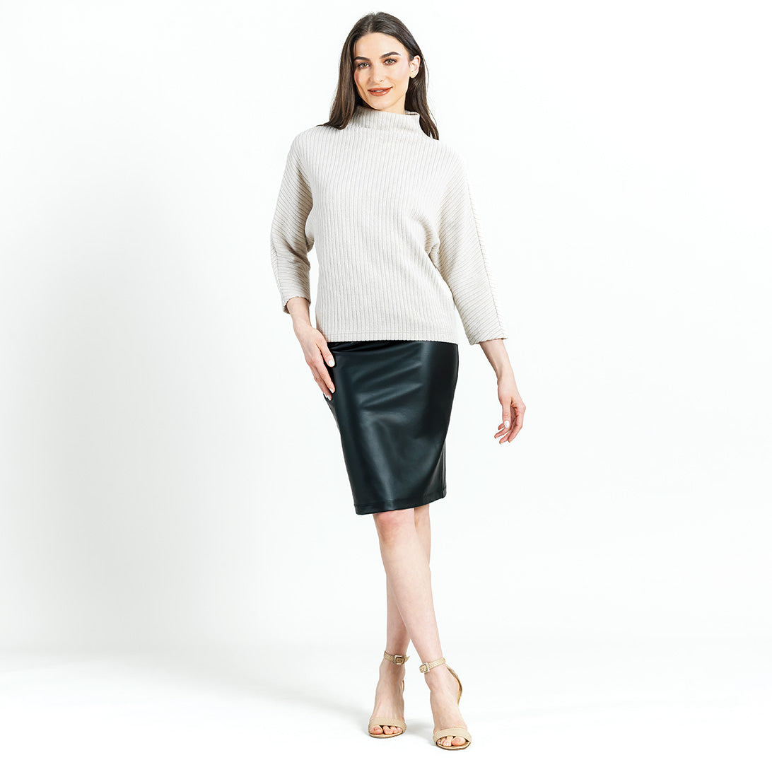 If you’re looking for a style that combines contemporary fashion with luxurious warmth, then look no further than our Chunky Ribbed Funnel Neck Modern Sweater Top! This sweater features a cozy funnel neckline, 3/4 length dolman sleeves, and a straight hemline. Our Sand color is a creamy nude shade with neutral eggshell undertones.Chunky Cotton-Ribbed Sweater Knit Our Poly-Cotton Blend sweater knit is constructed from a thicker, mid-heavy weight fabric. Its sturdy ribbed texture is meant to provide substantial warmth and a heavy drape, with a chunky structure that retains its shape for long-lasting use. Known to get softer with each wear while maintaining exceptional durability that is easy to care for and travel-friendly!Travel Friendly Chunky Ribbed Texture Thicker, Mid-Heavy Weight Fabric