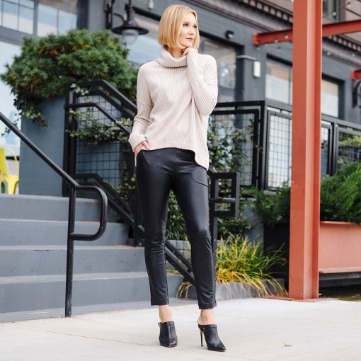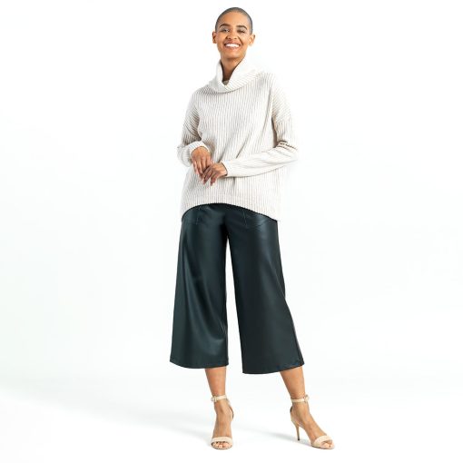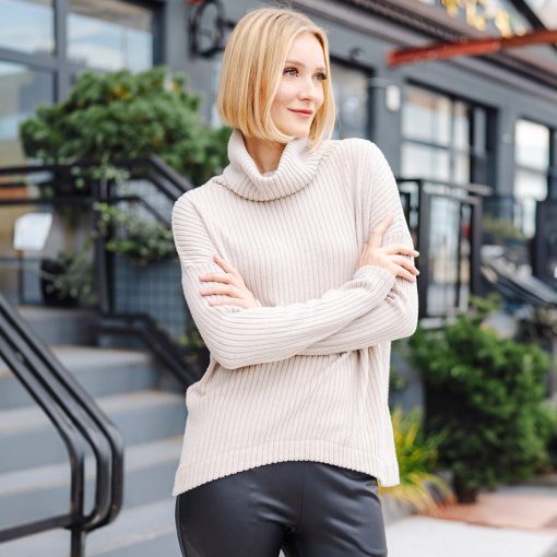 If you’re looking for a style that combines contemporary fashion with luxurious warmth, then look no further than our Chunky Ribbed Tipped Hem Sweater Top! This sweater features a cowl-style turtleneck, long sleeves, and a tipped hemline. Our Sand color is a creamy nude shade with neutral eggshell undertones.Chunky Cotton-Ribbed Sweater Knit Our Poly-Cotton Blend sweater knit is constructed from a thicker, mid-heavy weight fabric. Its sturdy ribbed texture is meant to provide substantial warmth and a heavy drape, with a chunky structure that retains its shape for long-lasting use. Known to get softer with each wear while maintaining exceptional durability that is easy to care for and travel-friendly!Travel Friendly Chunky Ribbed Texture Thicker, Mid-Heavy Weight Fabric