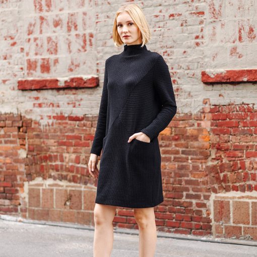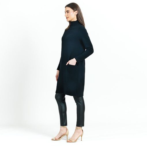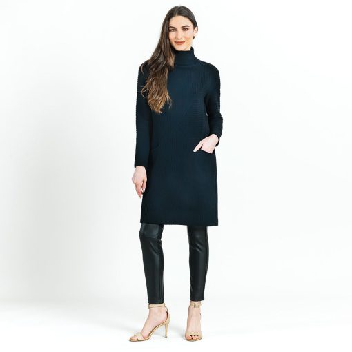Our Chunky Ribbed Tunic Pocket Sweater Dress is perfect for the woman on the go who doesn’t want to sacrifice style during those cooler months! This sweater dress features a funnel neckline, long sleeves, a diagonal chest-to-bodice princess seam that transitions into standard cross-stitched pockets, and a straight hemline. Chunky Cotton-Ribbed Sweater Knit Our Poly-Cotton Blend sweater knit is constructed from a thicker, mid-heavy weight fabric. Its sturdy ribbed texture is meant to provide substantial warmth and a heavy drape, with a chunky structure that retains its shape for long-lasting use. Known to get softer with each wear while maintaining exceptional durability that is easy to care for and travel-friendly!Travel Friendly Chunky Ribbed Texture Thicker, Mid-Heavy Weight Fabric