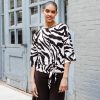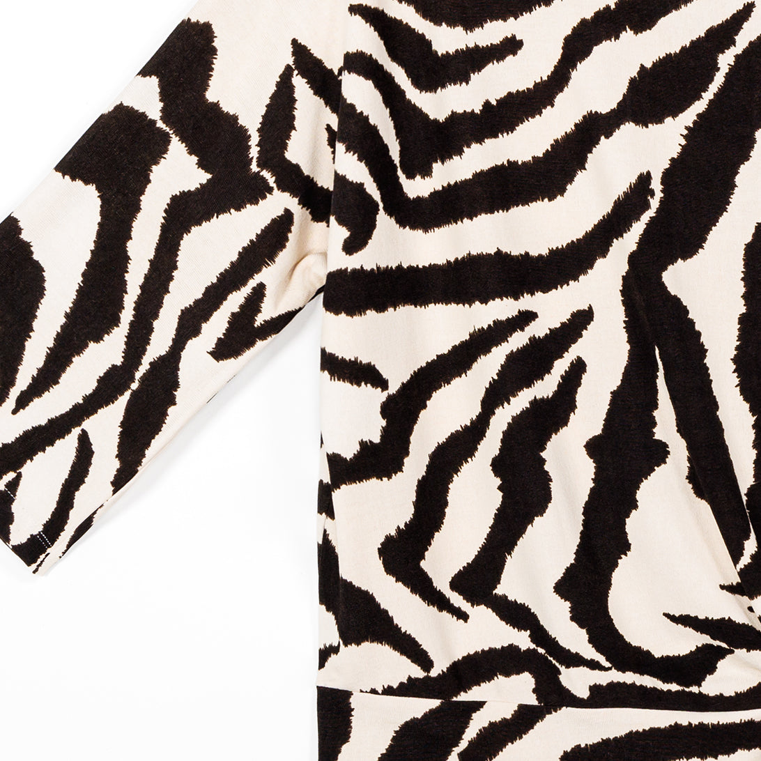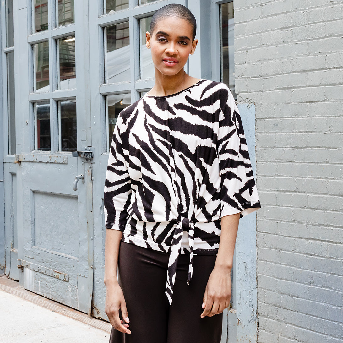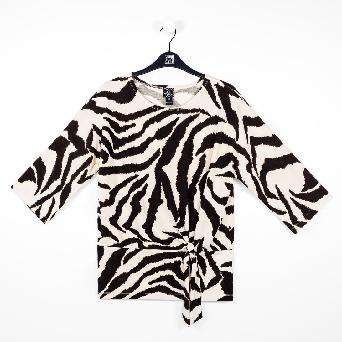 You were born to stand out in our Cozy Zebra Side Tie Sweater Top! Featuring a high round neckline, elbow-length sleeves, and side tie detail, with a waist-hugging hemline, that displays an elegant blouson silhouette. A flattering, large-scale zebra print in brown is displayed against a creamy beige background. ♥ Each piece is a unique, one-of-a-kind print and print placement will vary. Cozy Sweater KnitOur cozy sweaters are designed for optimal comfort and convenience. Made from lightweight soft plush knit and Poly-Blend fibers, they are the perfect addition to any wardrobe. Ideal for layering and is travel-friendly but still breathable enough to keep you from getting too warm. Easy to care for and long-lasting, they are sure to become a staple in your everyday. Travel Friendly Lightweight Sweater Knit Soft Plushy Texture