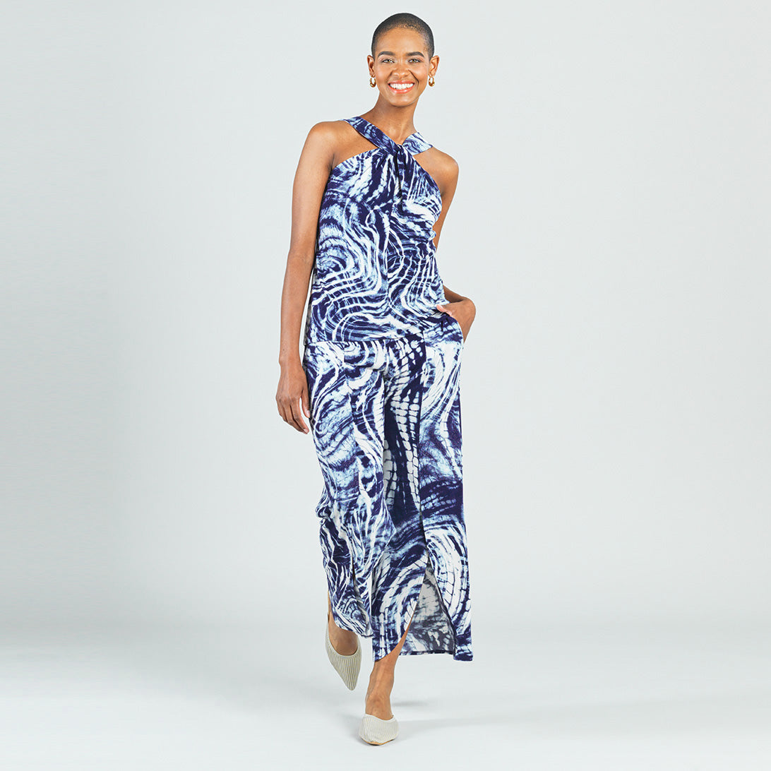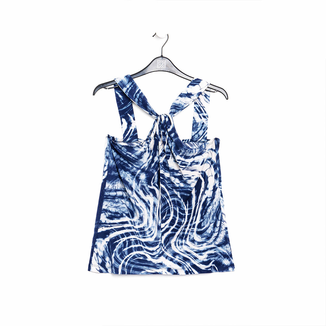 Our Swirl Wave Grecian Halter Top is as stunning as the eye can sea! Featuring a feminine Grecian halter neckline, that transitions into two standard back straps, and a bodice that naturally drapes into a straight hemline. **This top features a stylish, off-the-shoulder option so you can switch up your neckline for different occasions. The versatile design allows for multiple ways to wear and accessorize the top.A beautiful print of oceanic waves in swirl-like shapes, encompassed by sea foam-like splatters, in shades of navy and soft, off-white, and subtle hints of black. A unique knit, with an airy, open weave texture. Made with a delicate, soft, grainy finish. This fabric is designed to have a sophisticated, 3D-like effect, and is lightweight enough to catch any cool breeze. ♥ Each piece is a unique, one-of-a-kind print and print placement will vary. Textured Crepe Knit Fabric This signature product is crafted from luxurious and comfortable soft stretch poly blend fibers. Its unique textured crepe knit fabric offers excellent breathability and is extremely lightweight in feel.Wrinkle Free Travel Friendly Crepe Textured Knit Fabric Airy, Open Weave Texture