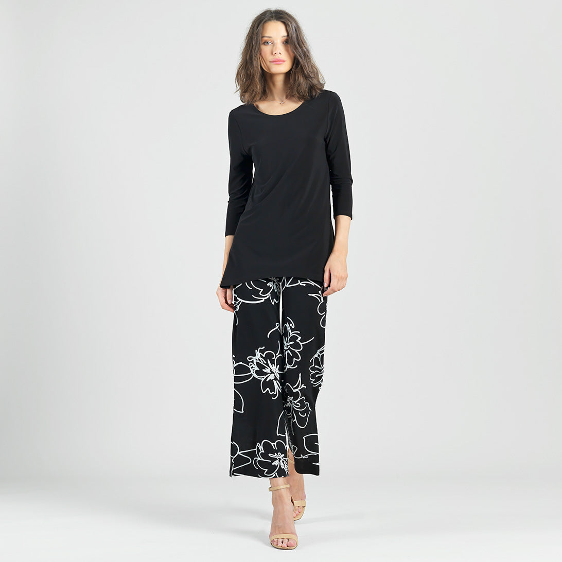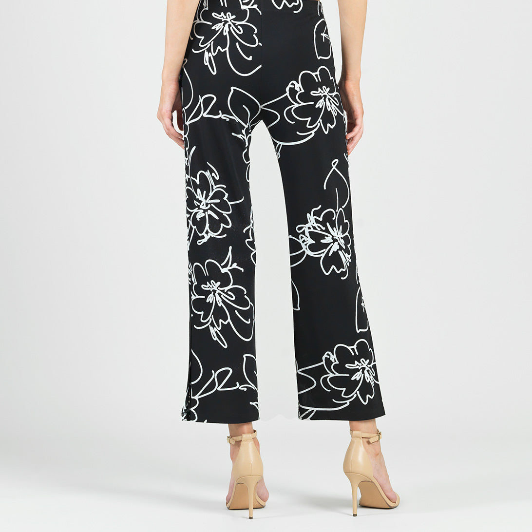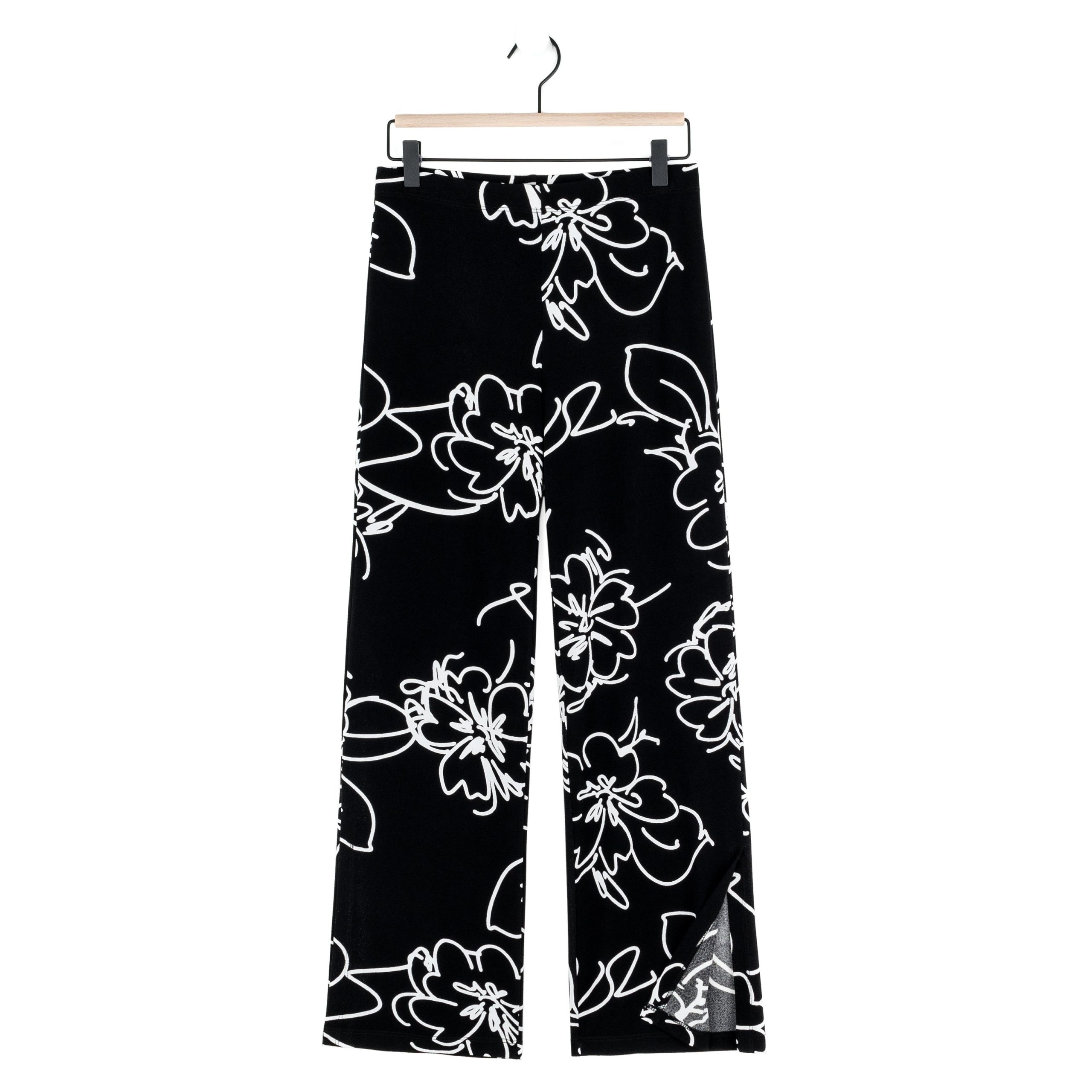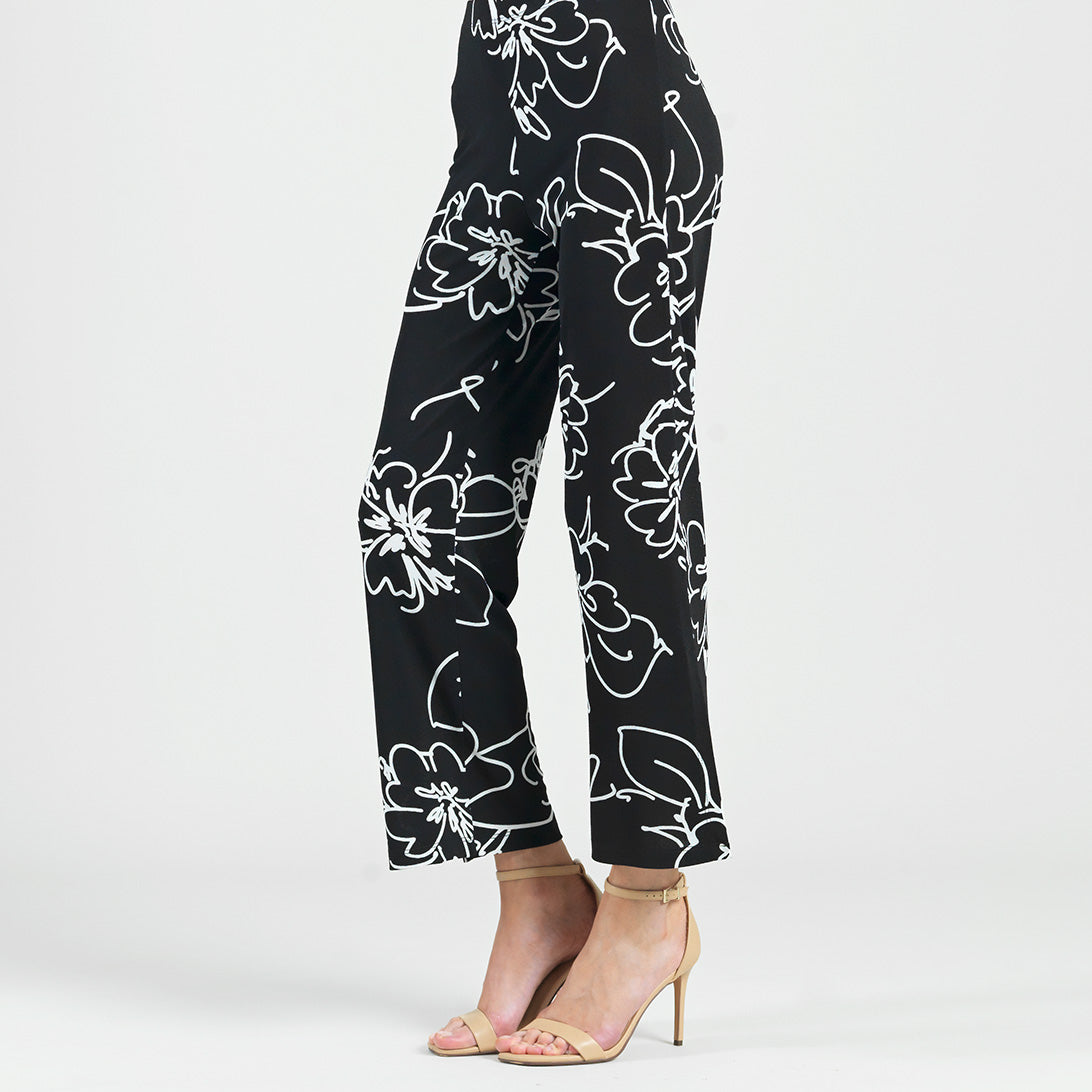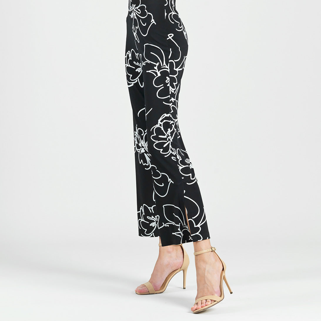 Draw just the right amount of attention in our Blossom Sketch Crepe Knit Side Slit Ankle Petal Pant! This style features a 1” elastic waistband, a relaxed straight leg that is more fitted in the hip area then gradually transitions to a fashionable, slightly-flared hem with a 9″ side ankle slit for a touch of subtle sophistication. A whimsical print featuring charming white petal blooms in a hand-drawn effect, scattered against a black background, for a beautiful monochrome palette.♥ Each piece is a unique, one-of-a-kind print and print placement will vary. A unique knit, with an airy, open weave texture. Made with a delicate, soft, grainy finish. This fabric is designed to have a sophisticated, 3D-like effect, and is lightweight enough to catch any cool breeze. Textured Crepe Knit Fabric This signature product is crafted from luxurious and comfortable soft stretch poly blend fibers. Its unique textured crepe knit fabric offers excellent breathability and is extremely lightweight in feel.9″ Side Ankle Slit 1″ Elastic Waistband Wrinkle Free Travel Friendly Crepe Textured Knit Fabric Airy, Open Weave Texture