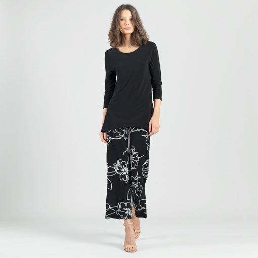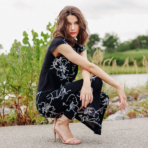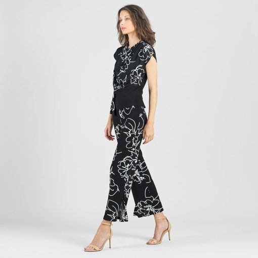 Draw just the right amount of attention in our Blossom Sketch Crepe Knit Side Slit Ankle Petal Pant! This style features a 1” elastic waistband, a relaxed straight leg that is more fitted in the hip area then gradually transitions to a fashionable, slightly-flared hem with a 9″ side ankle slit for a touch of subtle sophistication. A whimsical print featuring charming white petal blooms in a hand-drawn effect, scattered against a black background, for a beautiful monochrome palette.♥ Each piece is a unique, one-of-a-kind print and print placement will vary. A unique knit, with an airy, open weave texture. Made with a delicate, soft, grainy finish. This fabric is designed to have a sophisticated, 3D-like effect, and is lightweight enough to catch any cool breeze. Textured Crepe Knit Fabric This signature product is crafted from luxurious and comfortable soft stretch poly blend fibers. Its unique textured crepe knit fabric offers excellent breathability and is extremely lightweight in feel.9″ Side Ankle Slit 1″ Elastic Waistband Wrinkle Free Travel Friendly Crepe Textured Knit Fabric Airy, Open Weave Texture