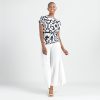 When art and fashion combine, they create our Aztec Crinkle Pleat Dolman Short Sleeve Top! Featuring a wide neckline, short dolman sleeves with a waist-hugging hemline, that displays an elegant blouson silhouette. A graphic, black geometric pattern displayed against a creamy bone background, that resembles an Aztec-like textile which creates a symmetrical formation that is appealing to the eyes. A new, high-quality fabric inspired by crinkle-pleat fibers. Designed with a distinct texture thanks to its lusciously soft ridges. It is durable, retains its shape, and creates a beautiful drape with a luxurious finish, and pleasant breathability.Carefree Travel Fabric – Soft Crinkle Pleat Knit Our signature poly-spandex blend fabric provides a finish that is rich in texture while being soft, providing lightweight stretch and is breathable with quick-drying properties. This delicate fabric offers refined durability with crinkled dimension for visual interest. Perfect for warm or transitional weather, you can pack it up and go with ease!Wrinkle Free Travel Friendly Durable and Lightweight Soft Crinkle-Texture