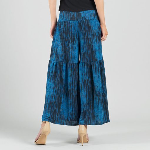 Your fashion tide is sure to rise, wearing our Water Ripple Crinkle Pleat Tiered Skirt-Pant! This one-of-a-kind style features a 1.5” pull-on elastic waistband, an ultra wide-leg silhouette that visually looks like a skirt, and provides beautiful, fluid movement with double-tier details which create a gorgeous drape that naturally flows against the body. **cardigan & tank twinset sold separately An abstract print that displays a mesmerizing pattern reminiscent of the subtle movement of tranquil water drops, comprised of shades of cobalt blue and black. A new, high-quality fabric inspired by crinkle-pleat fibers. Designed with a distinct texture thanks to its lusciously soft ridges. It is durable, retains its shape, and creates a beautiful drape with a luxurious finish, and pleasant breathability.Carefree Travel Fabric – Soft Crinkle Pleat Knit Our signature poly-spandex blend fabric provides a finish that is rich in texture while being soft, providing lightweight stretch, and is breathable with quick-drying properties. This delicate fabric offers refined durability with crinkled dimension for visual interest. Perfect for warm or transitional weather, you can pack it up and go with ease! 1.5″ Elastic Waistband 20″ Leg Hemline Wrinkle Free Travel Friendly Durable and Lightweight Soft Crinkle-Texture