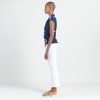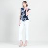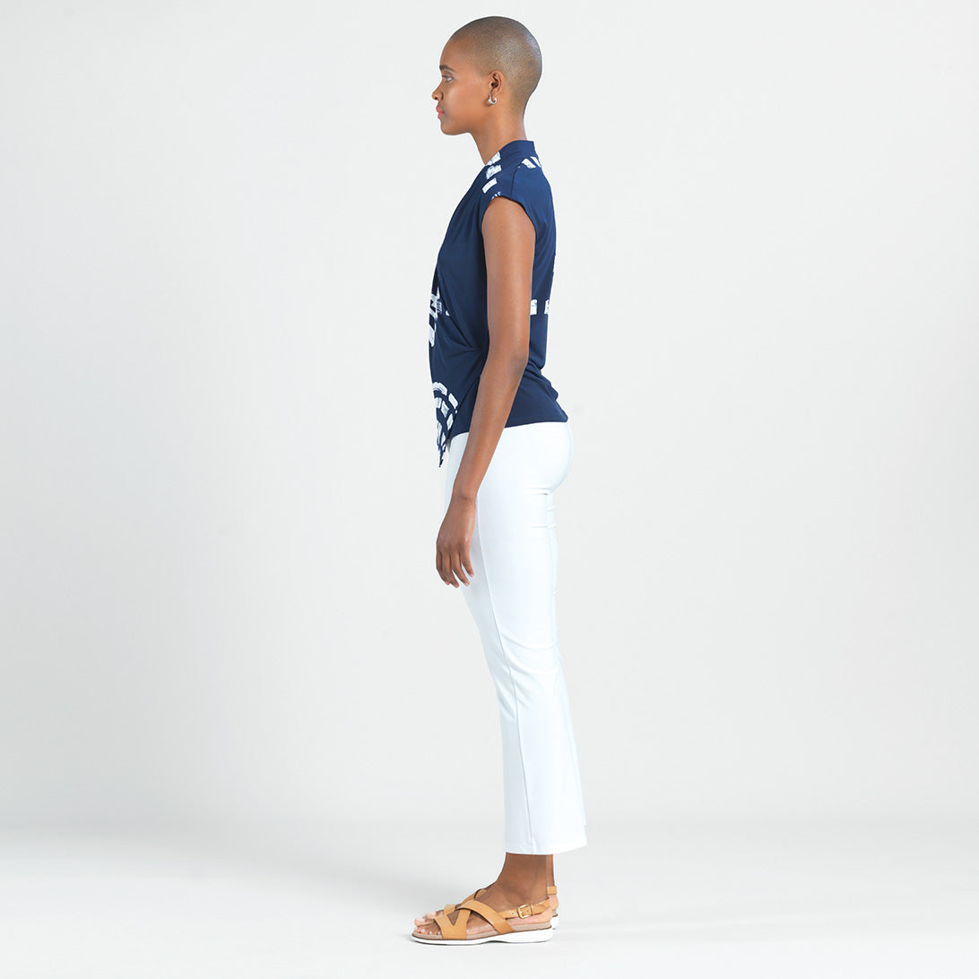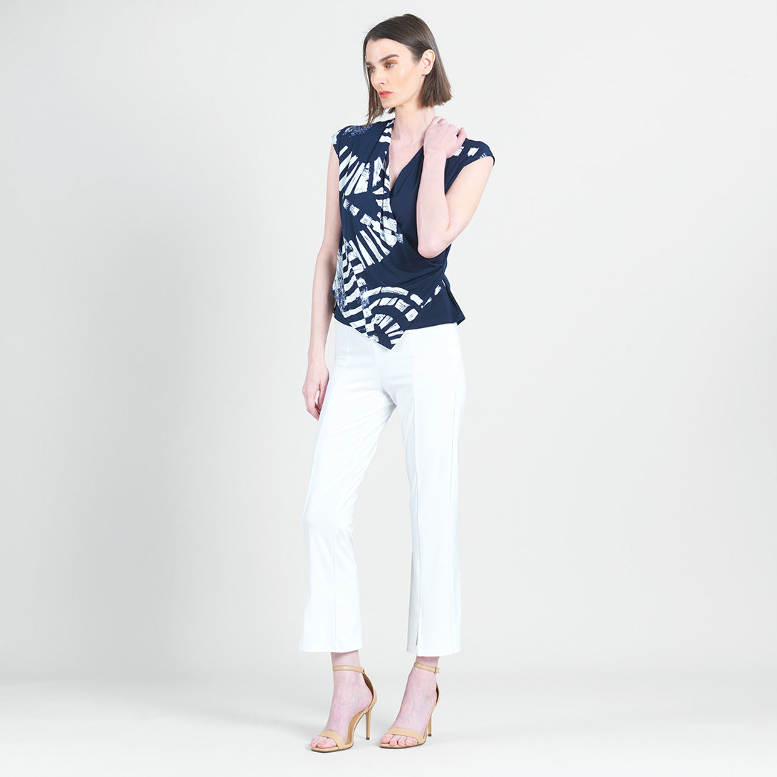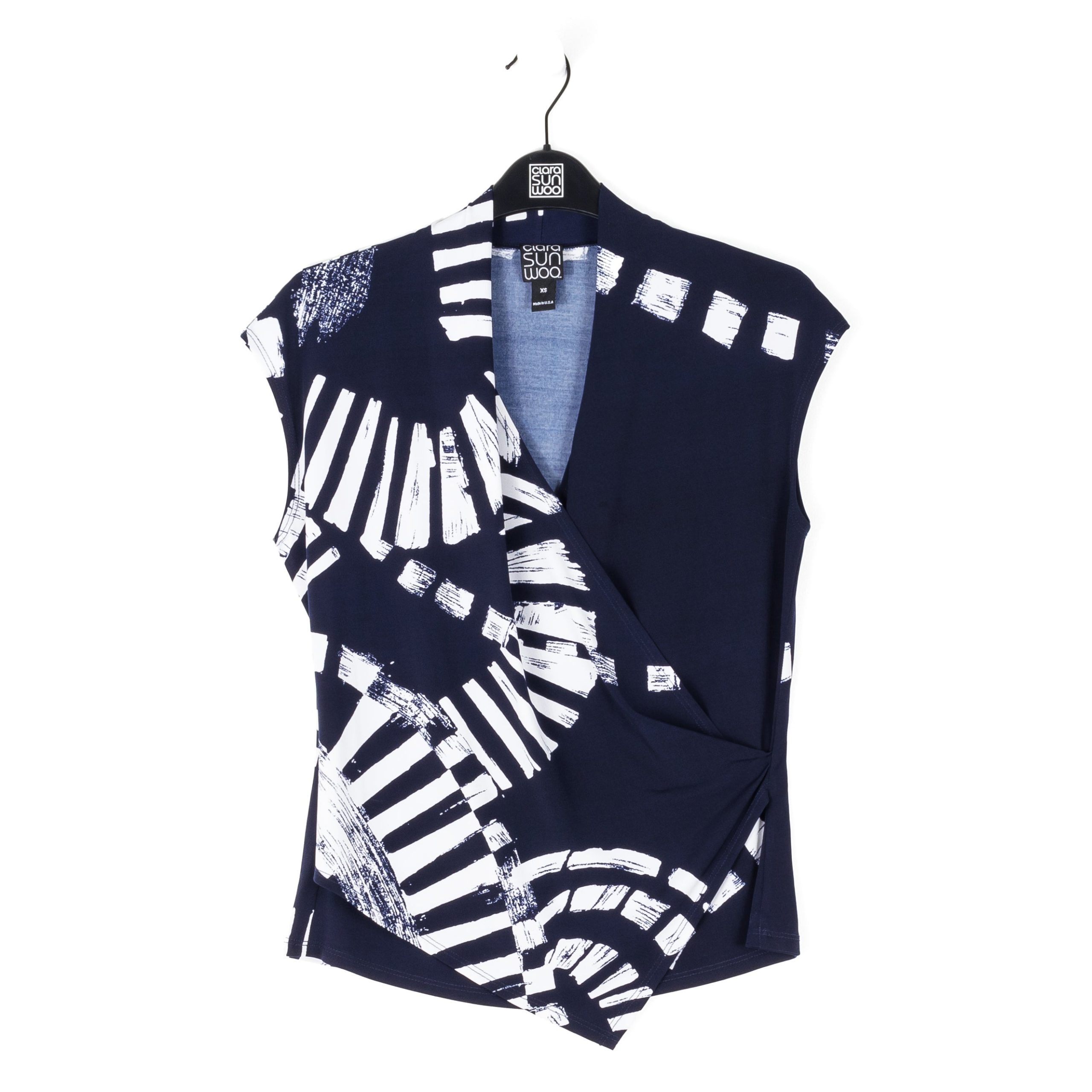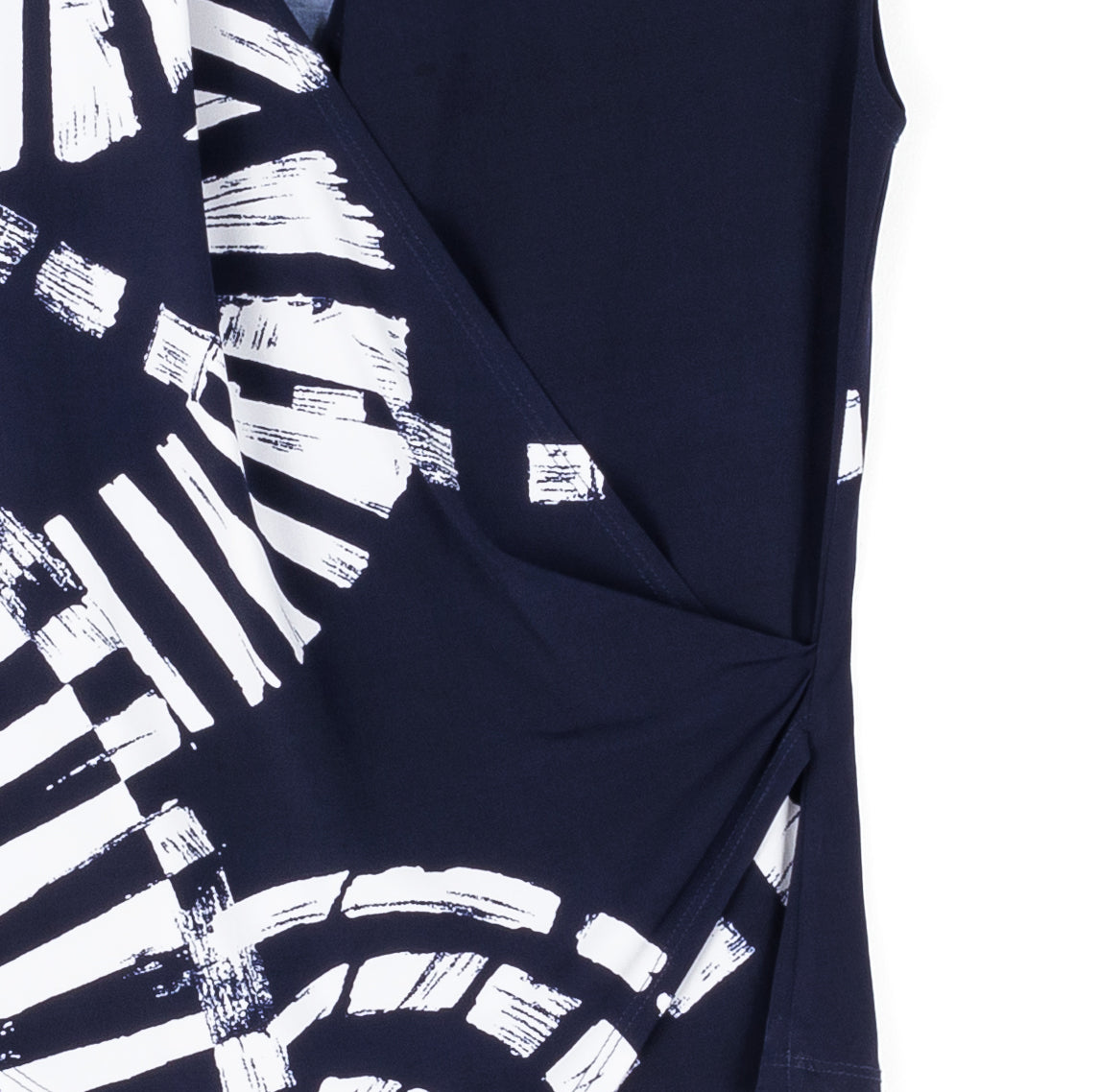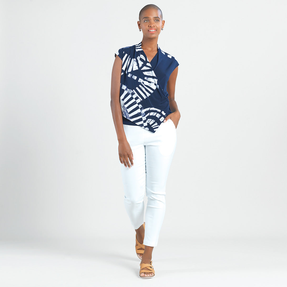 If you’re looking to blaze a fashion trail everyone will want to follow, then look no further than our Track Line Crossover Faux Wrap Top! This top features a cross-over, high surplice neckline, cap sleeves, and a faux wrap bodice with a modern overlay, against a straight hemline. This graphic print displays an abstract formation of bold white-block markings reminiscent of tire tracks, against a navy blue background. ♥ Each piece is a unique, one-of-a-kind print and print placement will vary. Carefree Travel Fabric – Soft Silky Knit Our signature poly blend fibers offer luxurious softness with lightweight, wrinkle-free comfort. This easy-care fabric is quick drying and cooler than linen or cotton, making it perfect for on-the-go wear.Wrinkle Free Travel Friendly Ultra Lightweight Soft Knit Fabric Breathable Jersey-Like Feel