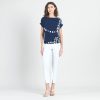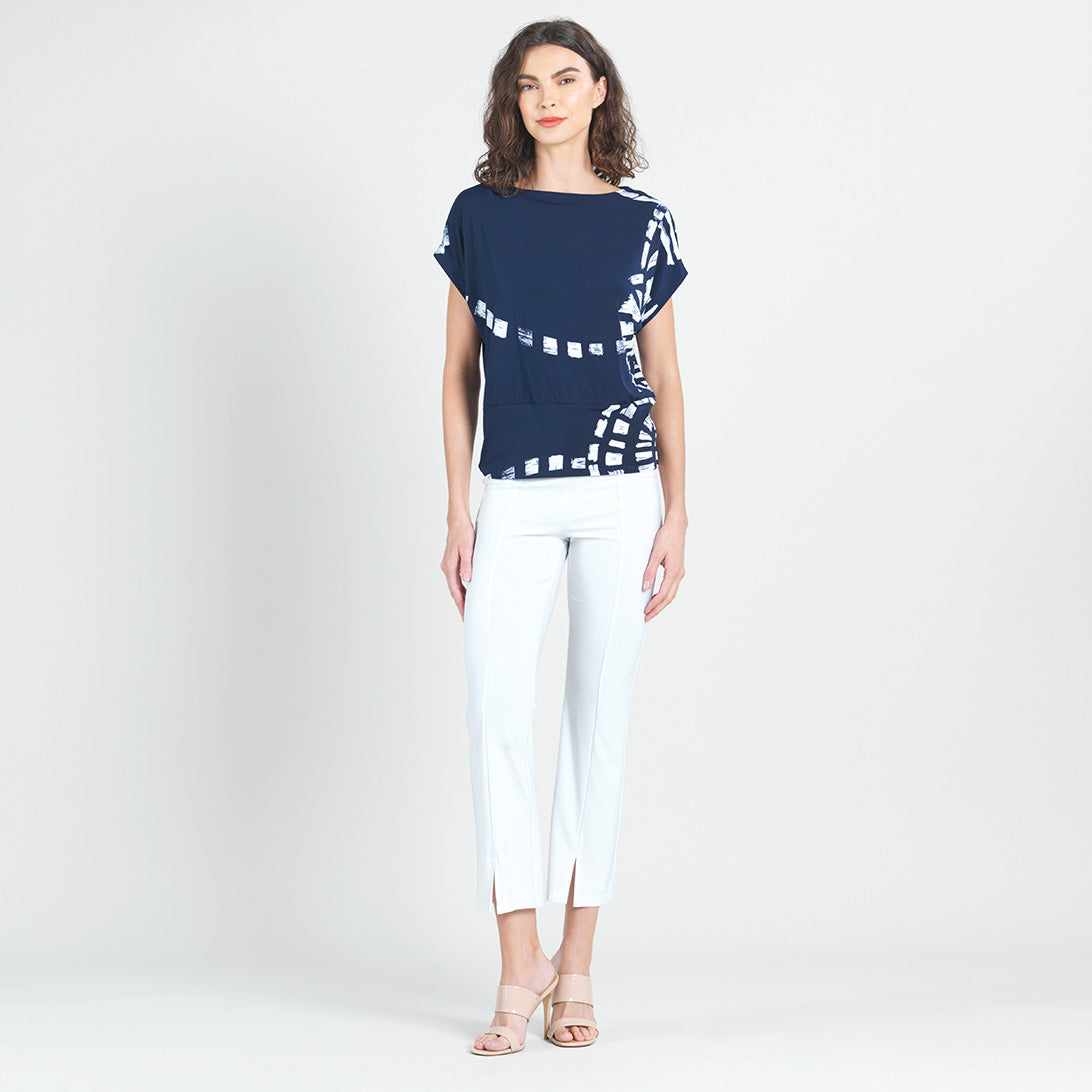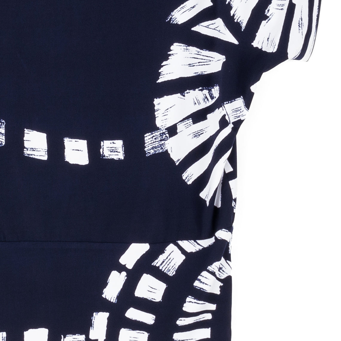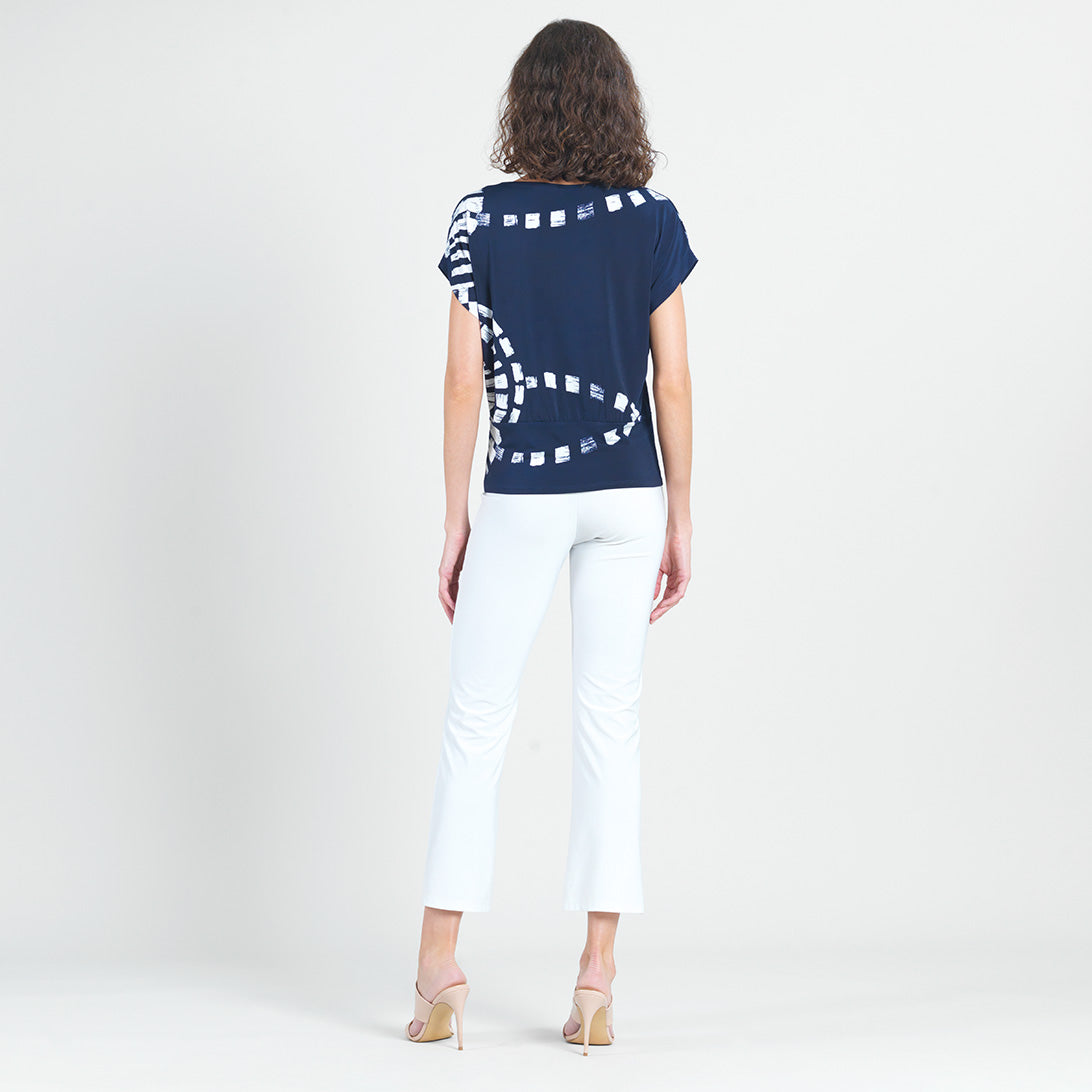 If you’re looking to blaze a fashion trail everyone will want to follow, then look no further than our Track Line Dolman Short Sleeve Top! Featuring a wide neckline, short dolman sleeves with a waist-hugging hemline, that displays an elegant blouson silhouette. This graphic print displays an abstract formation of bold white-block markings reminiscent of tire tracks, against a navy blue background. ♥ Each piece is a unique, one-of-a-kind print and print placement will vary.Carefree Travel Fabric – Soft Silky Knit Our signature poly blend fibers offer luxurious softness with lightweight, wrinkle-free comfort. This easy-care fabric is quick drying and cooler than linen or cotton, making it perfect for on-the-go wear.Wrinkle Free Travel Friendly Ultra Lightweight Soft Knit Fabric Breathable Jersey-Like Feel