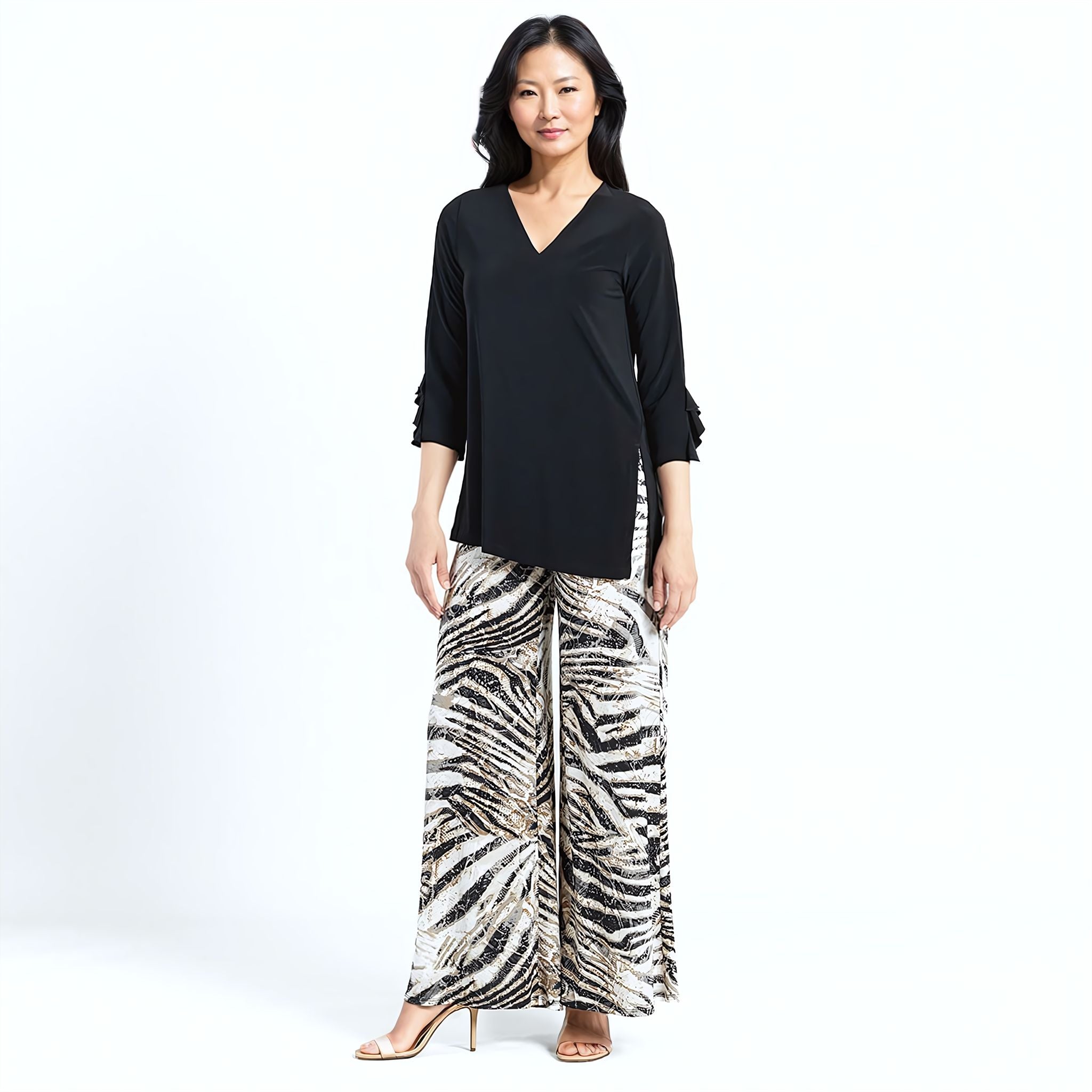 A style you’re sure to feel butterflies for can be found in our Flutter Cuff Side Vent Tunic! This style features a v-neckline, 3/4 length sleeves with charming flutter cuff details, and an asymmetrical hemline with a 10″ left-side vent. Carefree Travel Fabric – Soft Silky Knit Our signature poly blend fibers offer luxurious softness with lightweight, wrinkle-free comfort. This easy-care fabric is quick drying and cooler than linen or cotton, making it perfect for on-the-go wear.Wrinkle Free 10″ Left-Side Vent Travel Friendly Ultra Lightweight Soft Knit Fabric Breathable Jersey-Like Feel